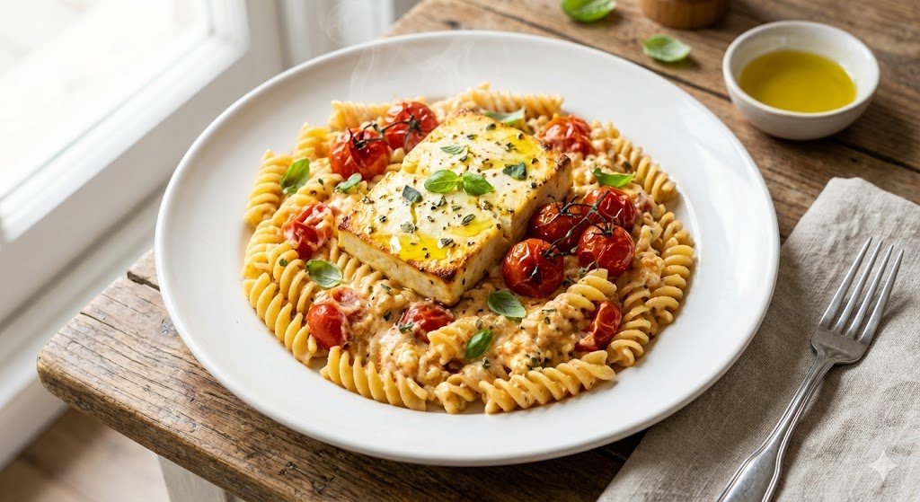 This baked feta pasta is a gentle, low-effort comfort meal perfect for busy or low-energy days. The creamy feta and sweet roasted tomatoes create a rich sauce with almost no stirring—making it disability-friendly and beginner-friendly.